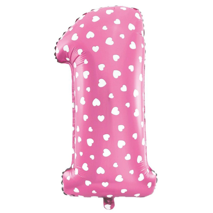 ✔️ balon foliowy cyfra różowa w serca "1" 40cm