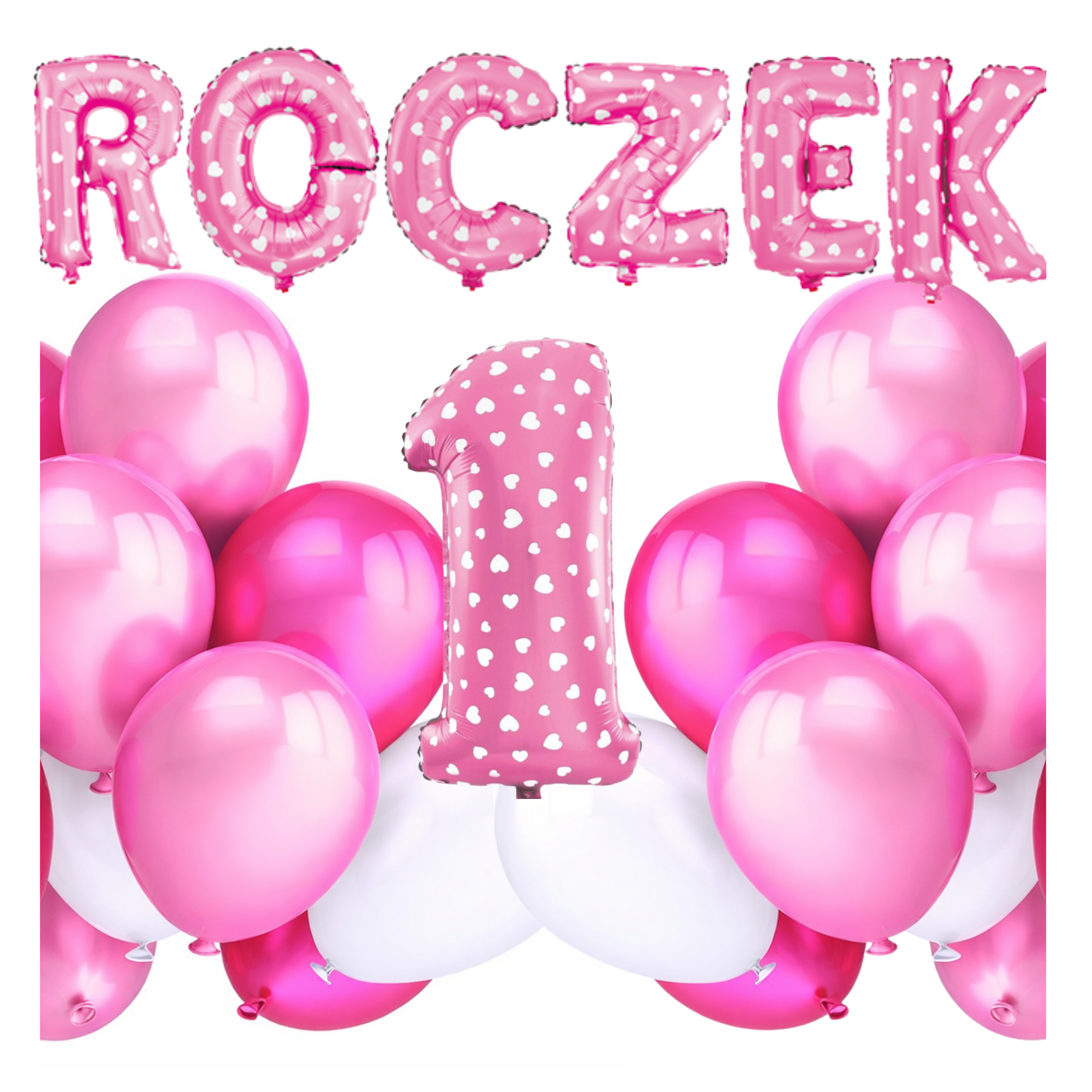 BALONY ROCZEK dziewczynki cyfra 1 różowa 40cm Zestaw balonów różowych napis