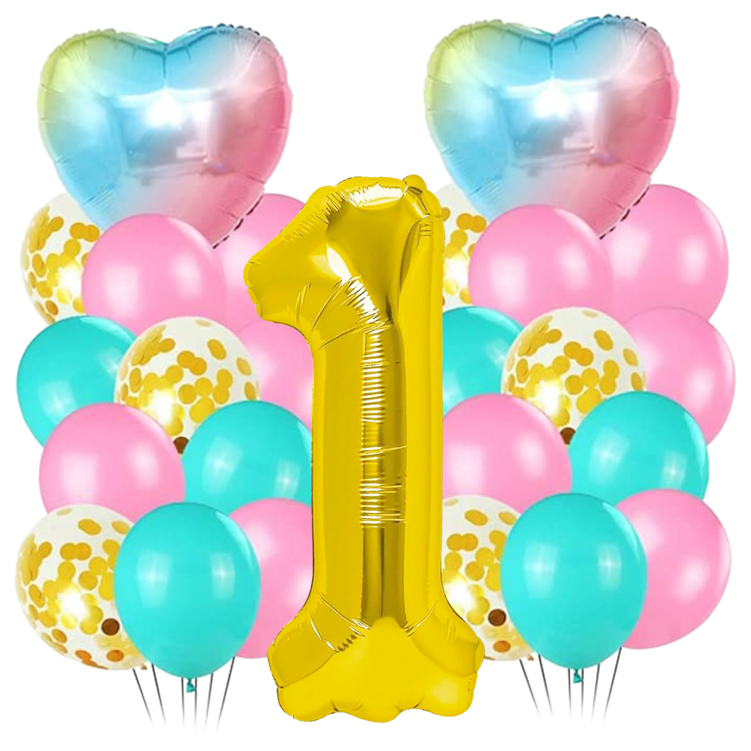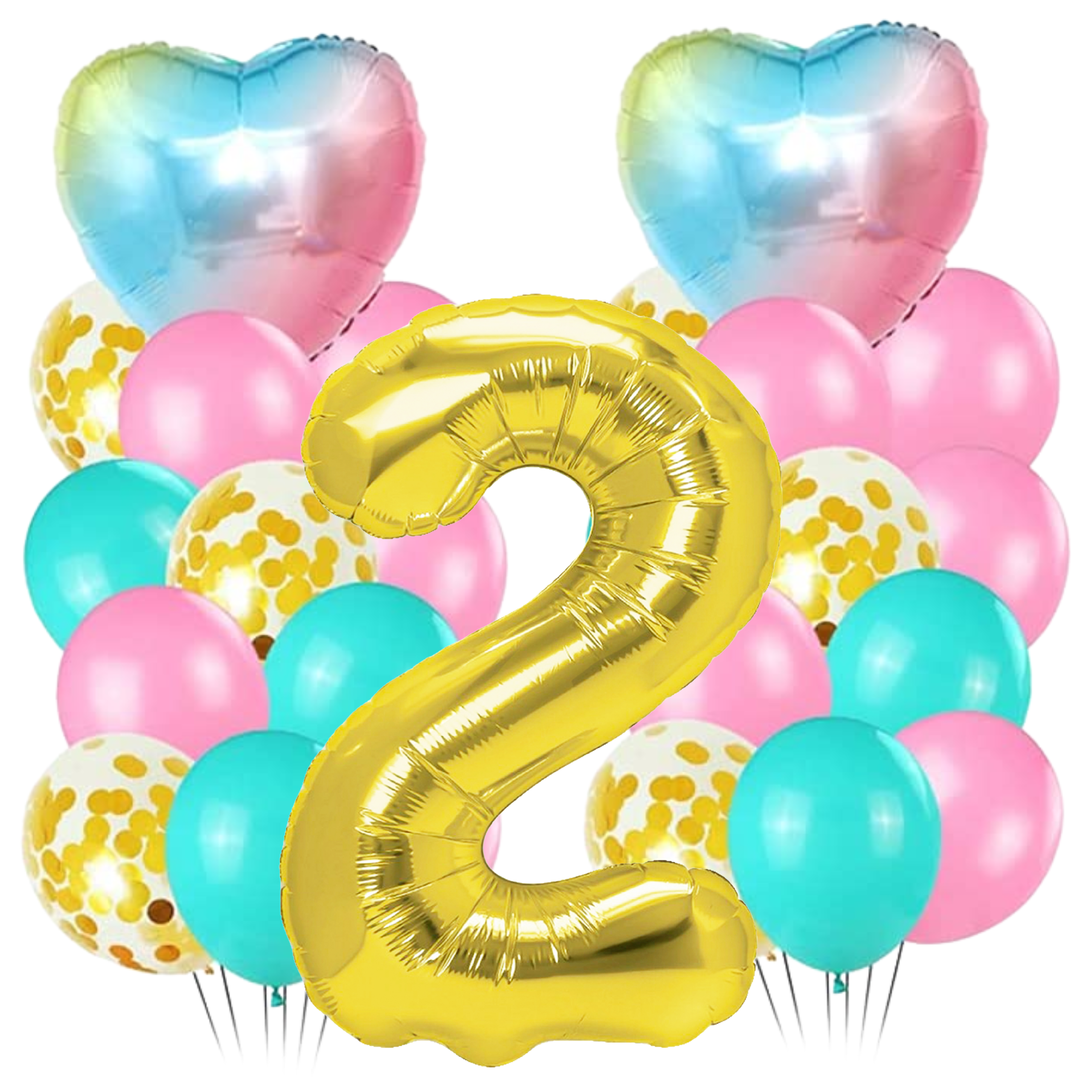 BALONY urodziny dziewczynki cyfra 0-9 DOWOLNA TĘCZOWE Zestaw balonów SERCE