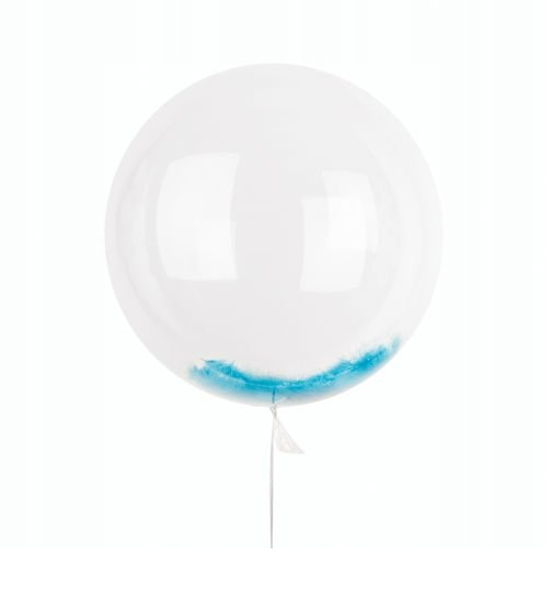 Balon bobo przezroczysty z piórkami niebieskimi