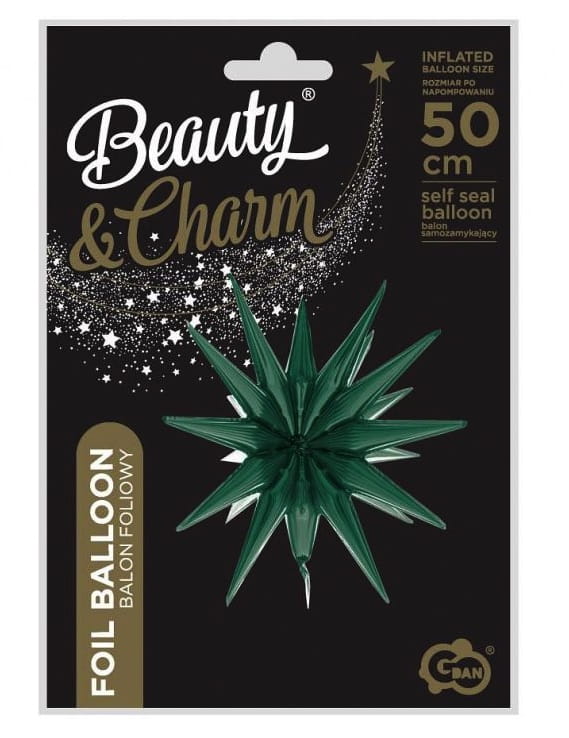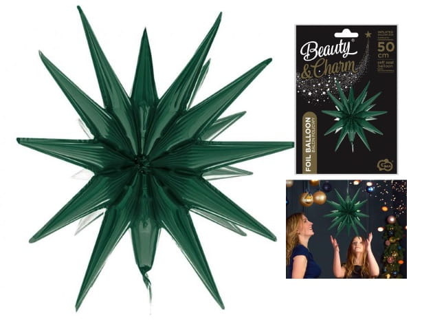 Balon foliowy Gwiazda 3D zieleń butelkowa, 50x46cm