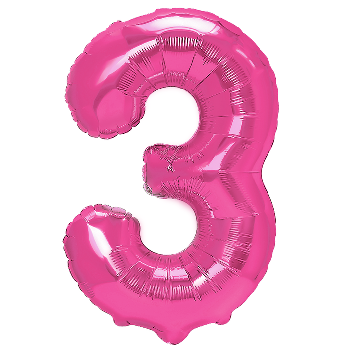 Balon foliowy ciemnoróżowy cyfra 3 100cm fuksja na hel