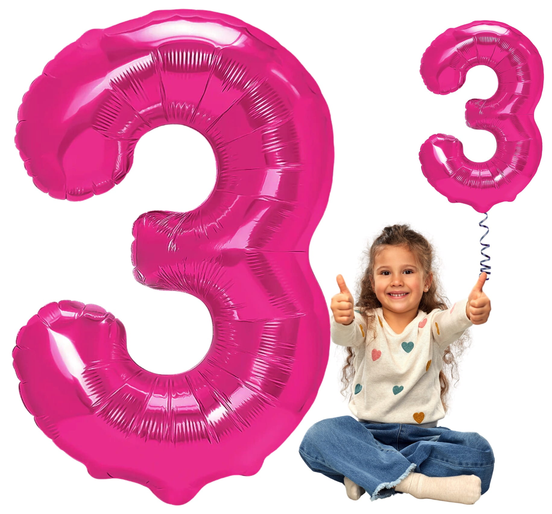 Balon foliowy Cyfra 3 różowa FUKSJA 100cm DUŻA 3 Urodziny dziewczynki hel