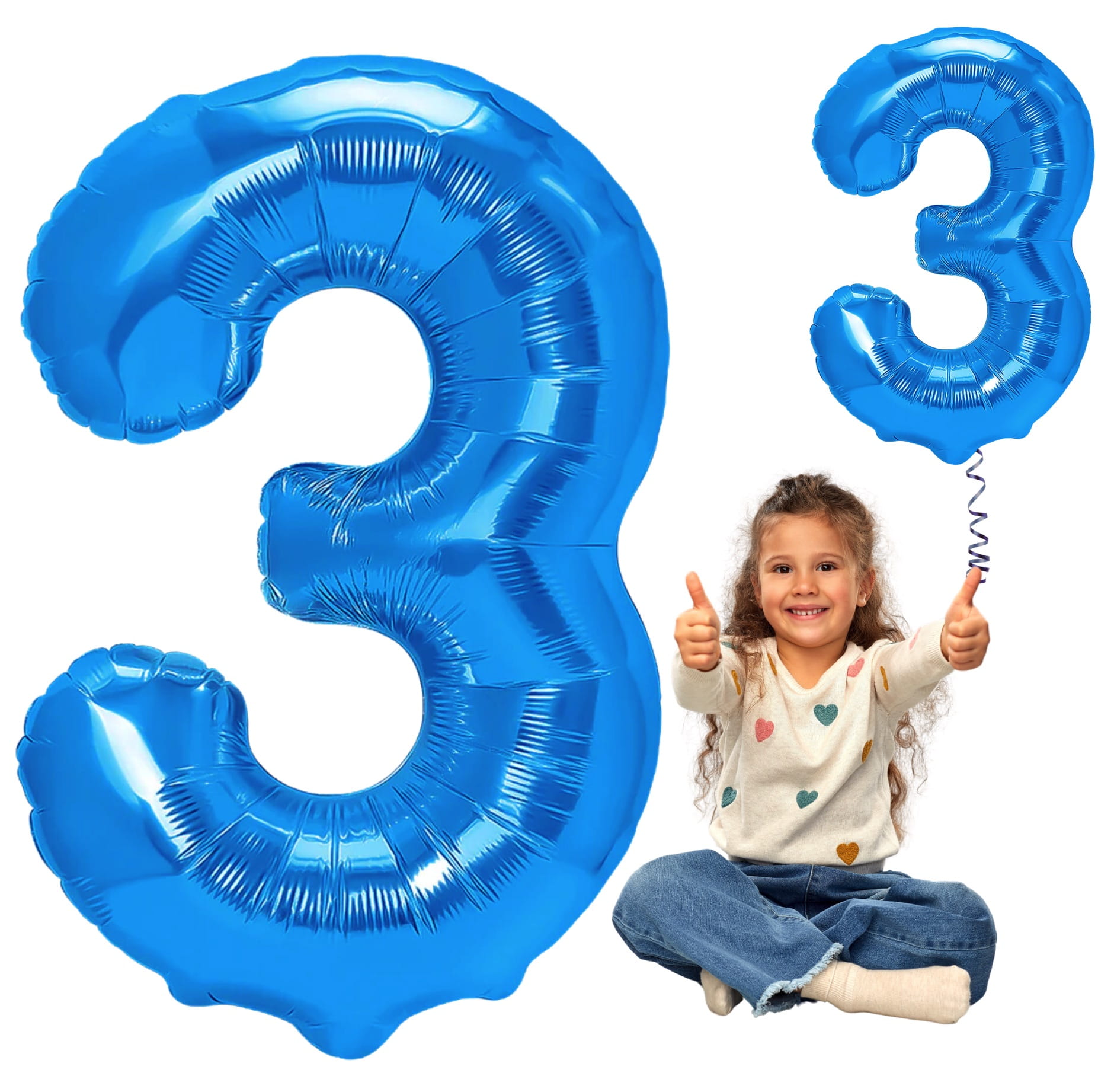 Balon foliowy Cyfra 3 niebieska 100cm foliowy balon 3 Urodziny Rocznica Hel