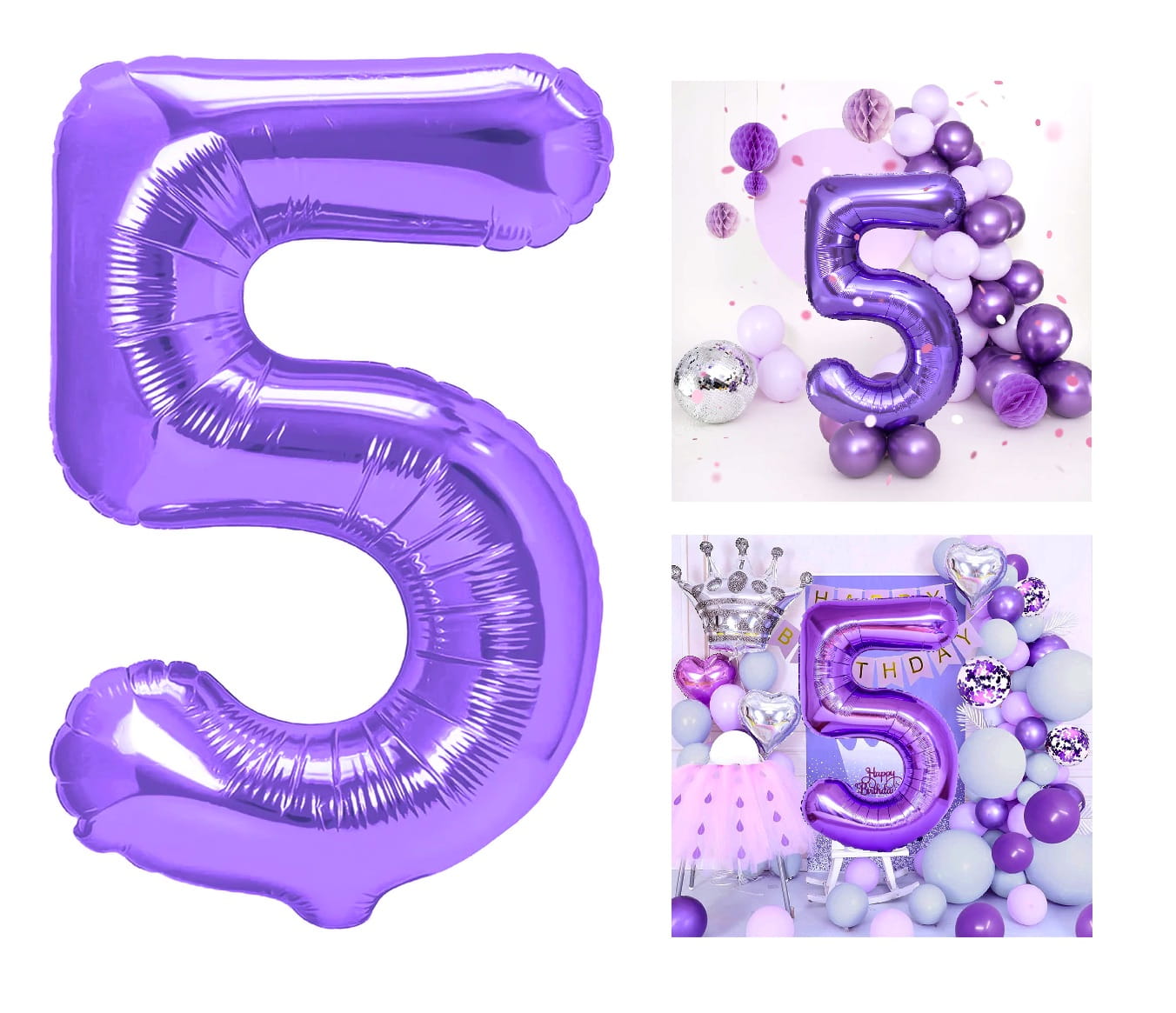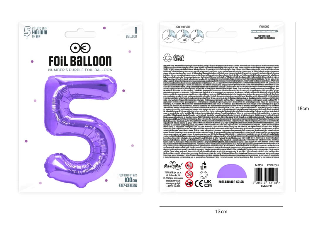 Balon foliowy cyfra 5 fioletowa 100cm