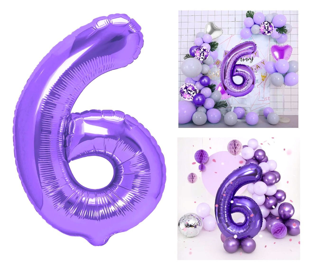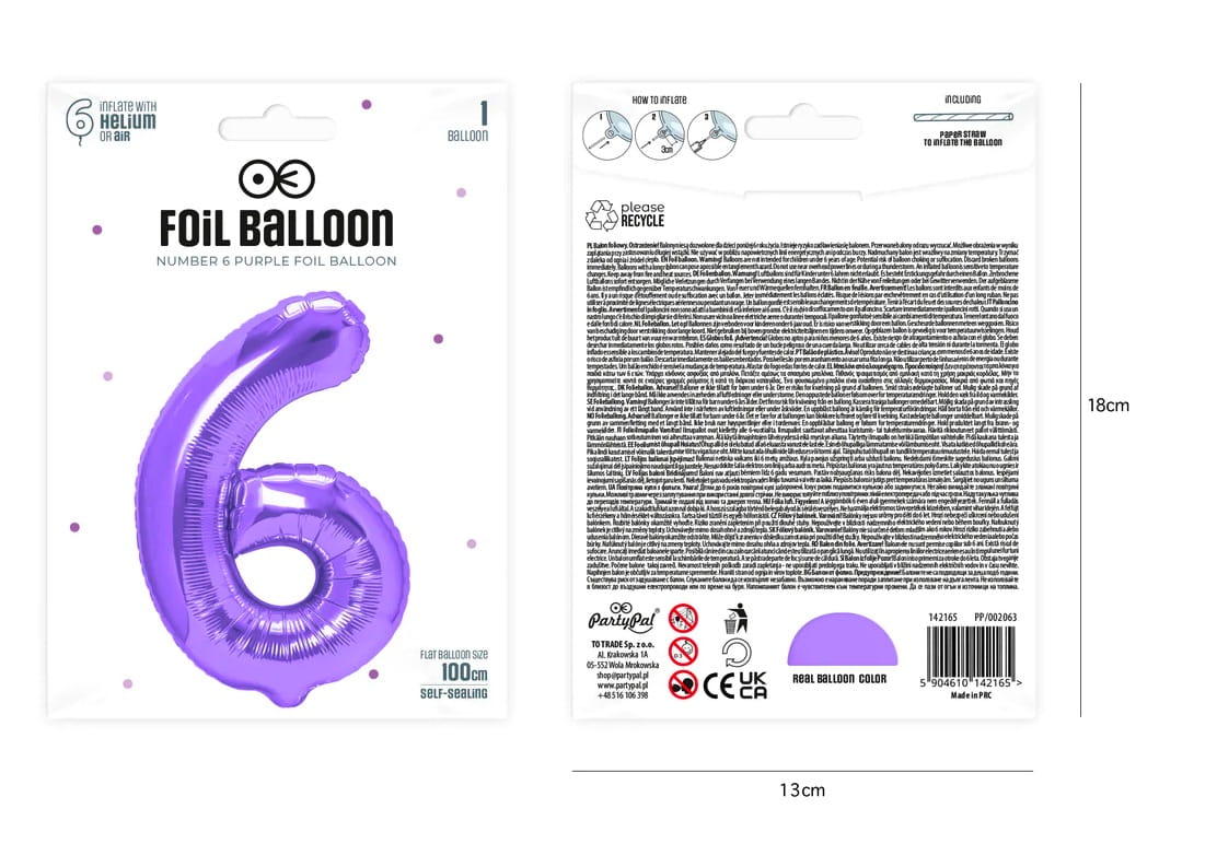Balon foliowy cyfra 6 fioletowa 100cm