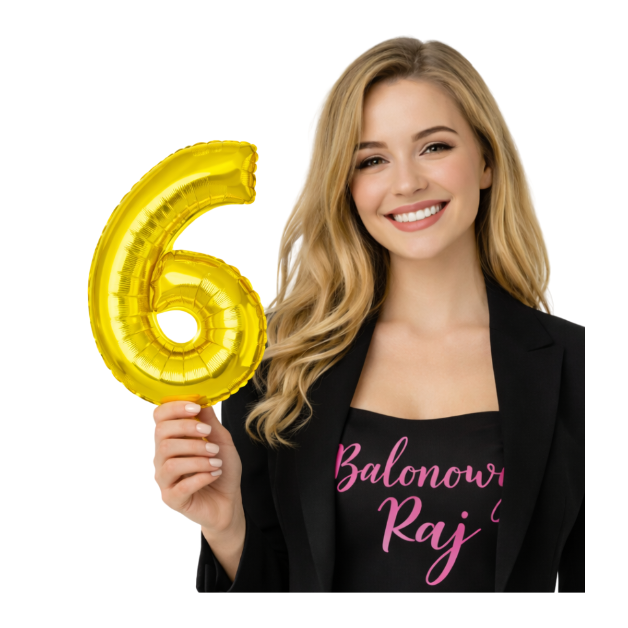 Balon foliowy cyfra 6 40cm złota CYFERKA numer sześć URODZINY Rocznica