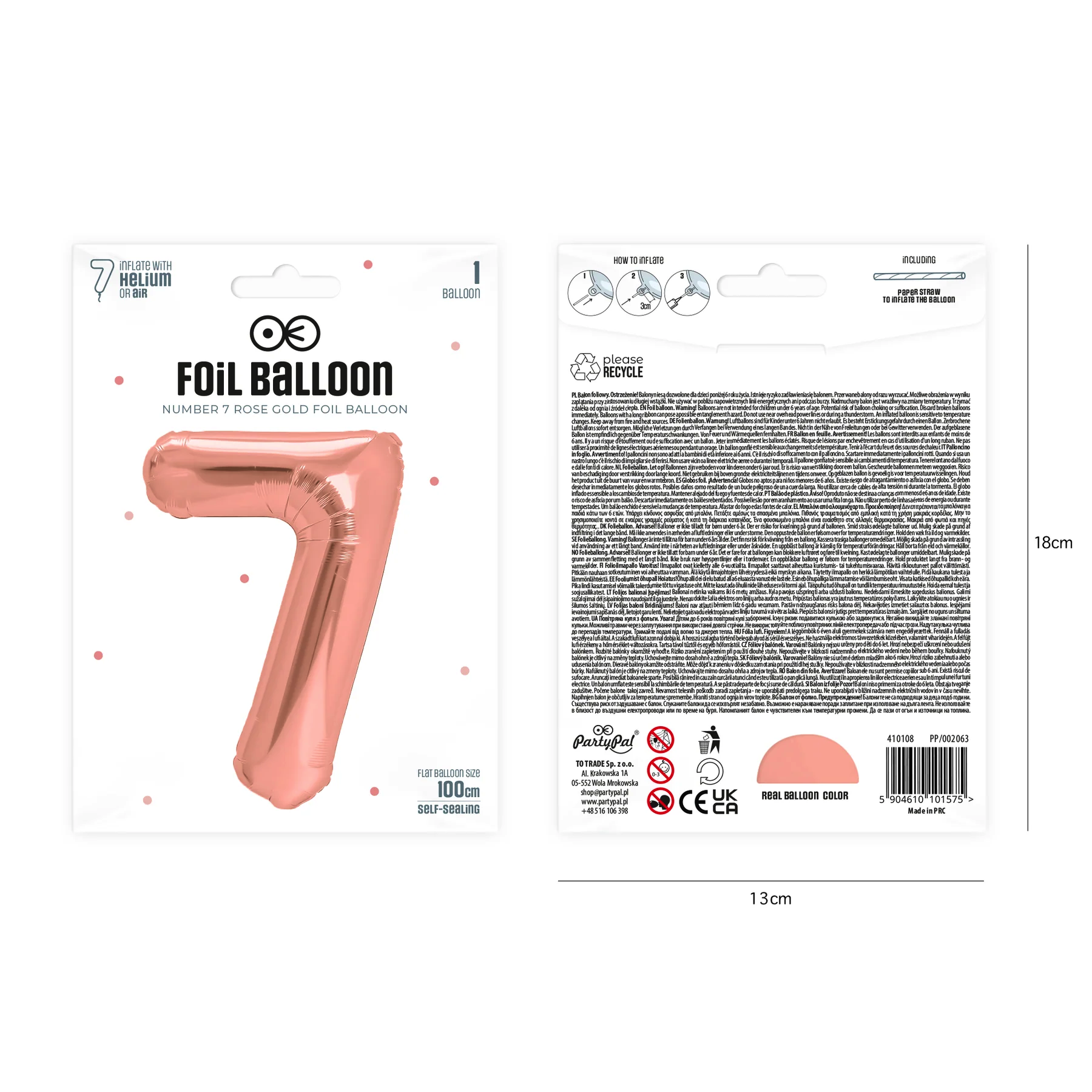 Balon foliowy cyfra rose gold 7 100cm Różowe złoto hel