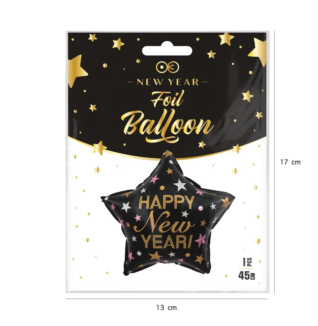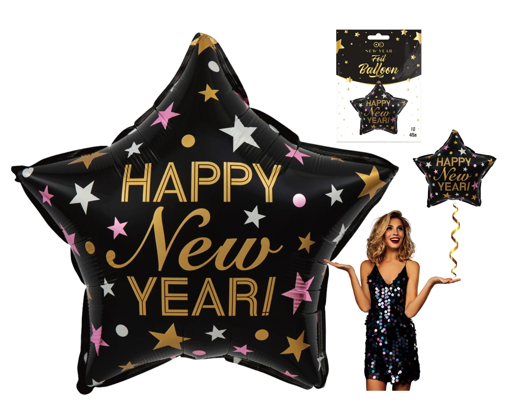 Balon foliowy na Sylwestra Gwiazda czarna Happy New Year
