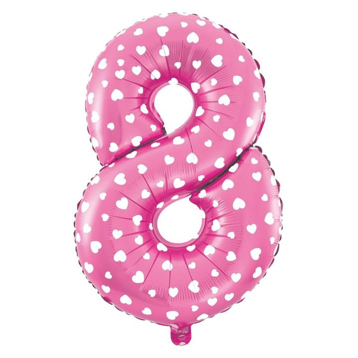 Balon foliowy cyfra 8 40cm różowa w serduszka NUMER 8 URODZINY dziewczynki