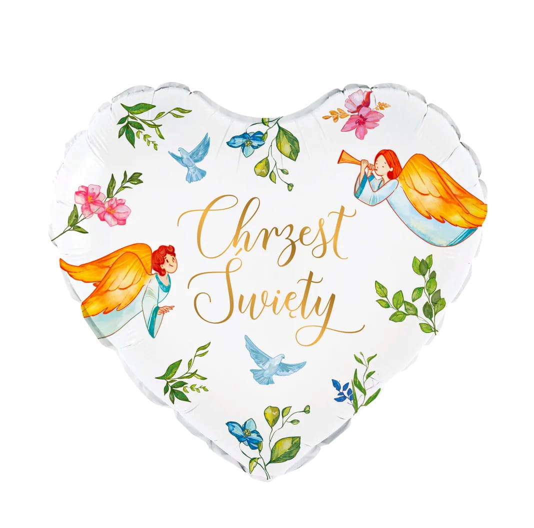 Balon foliowy serce Chrzest Święty Anioły 45cm