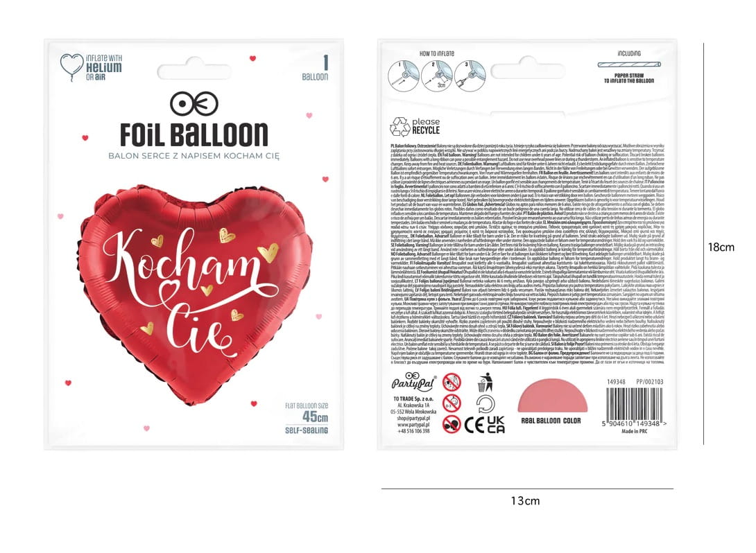 Balon foliowy Kocham Cię serce czerwone Walentynki Prezent serduszko
