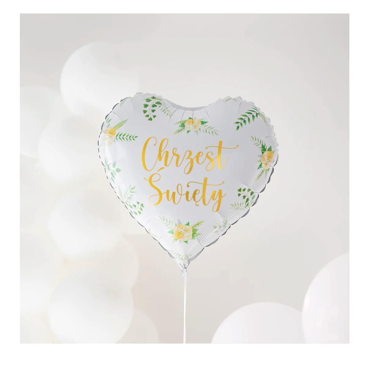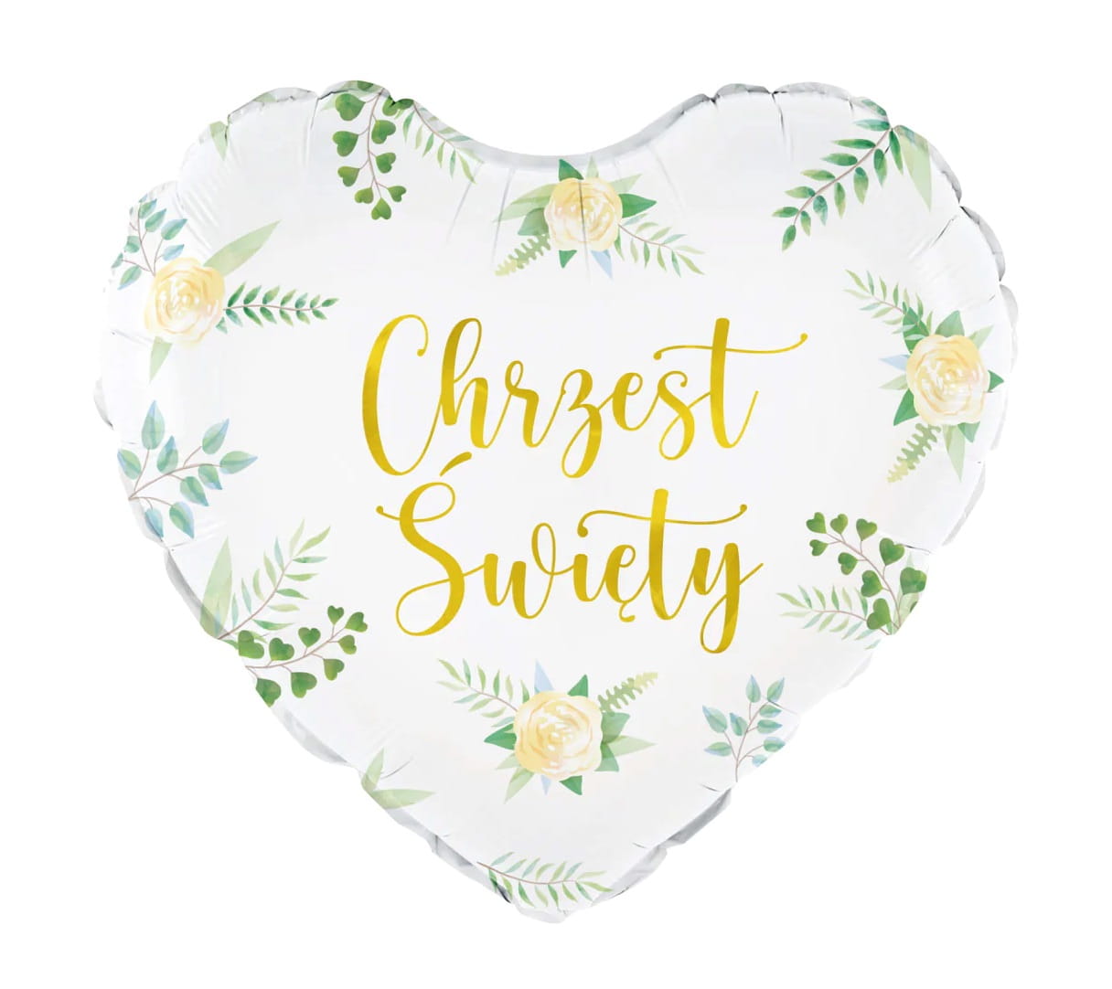 Balon serce CHRZEST ŚWIĘTY białe z napisem złotym foliowy Chrzciny 45cm