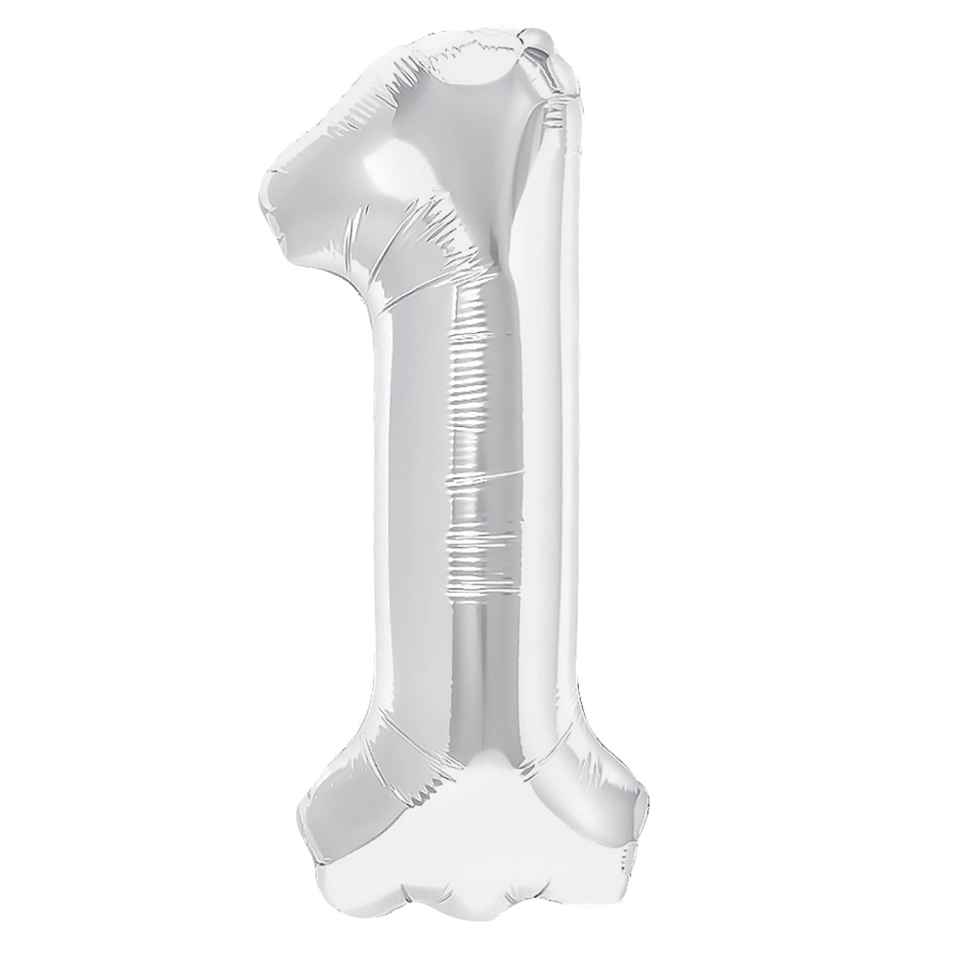 Balon foliowy srebrny cyfra 1 70cm na Pierwsze Urodziny