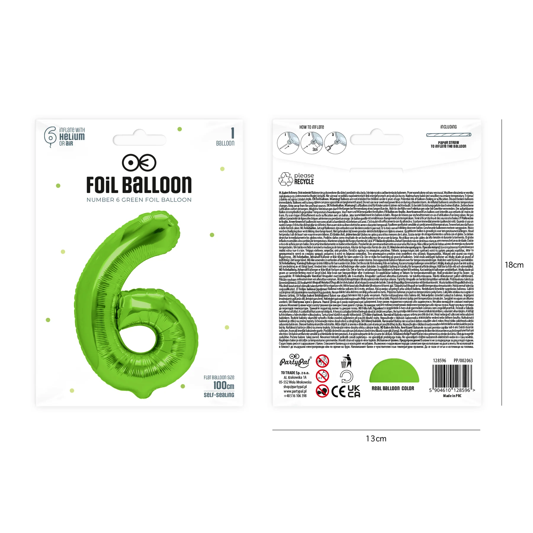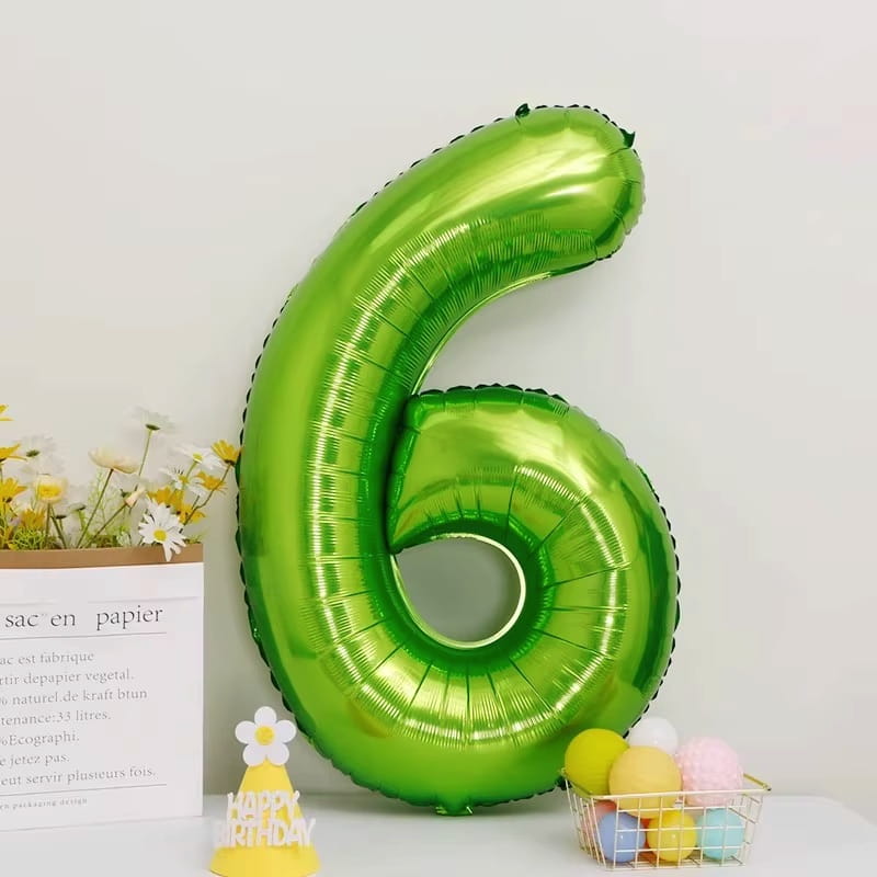 Balon foliowy cyfra 6 ZIELONA 100cm DUŻA HEL urodziny chłopca numer sześć