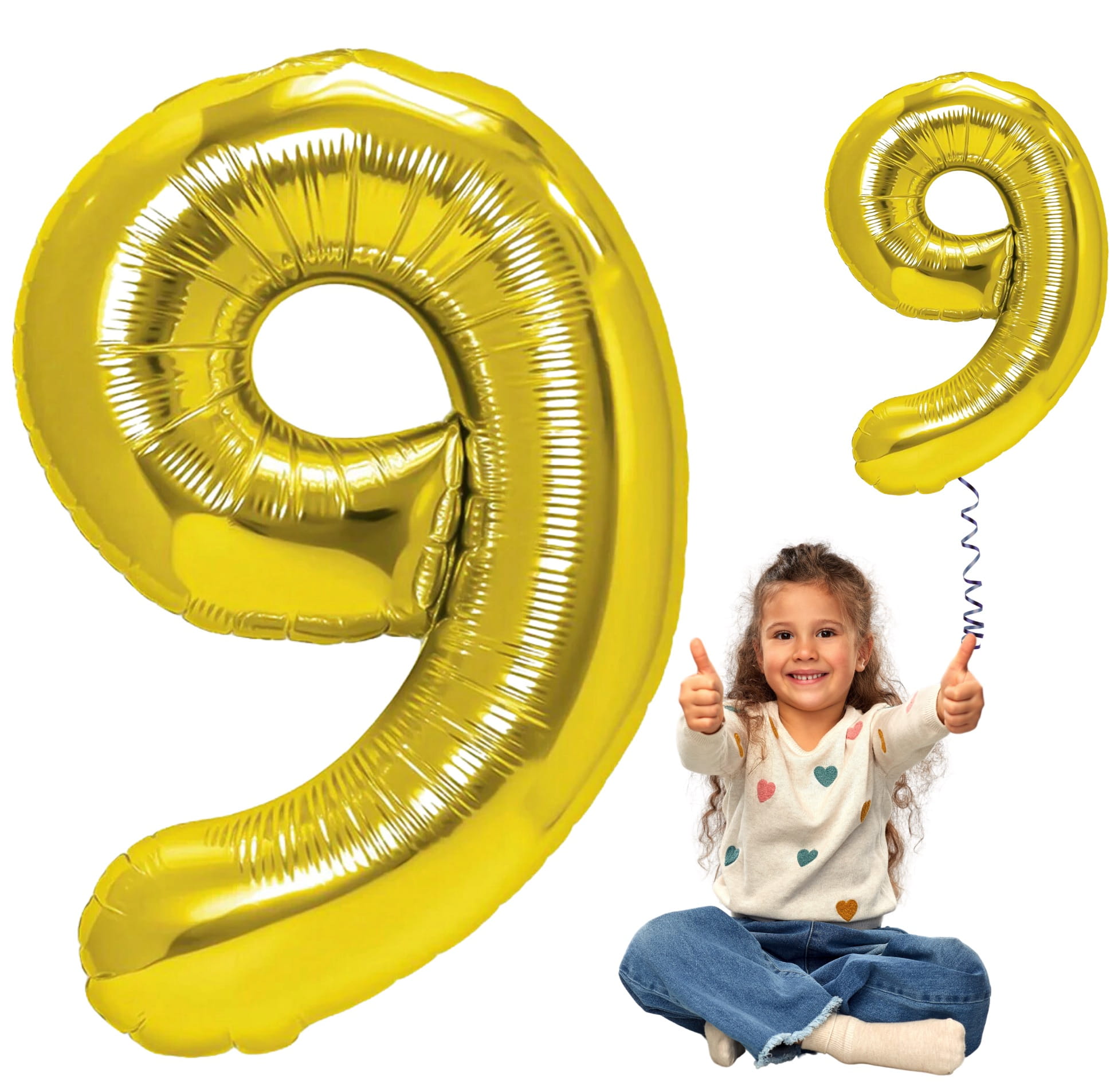 Balon foliowy złoty cyfra 9 100cm złota hel