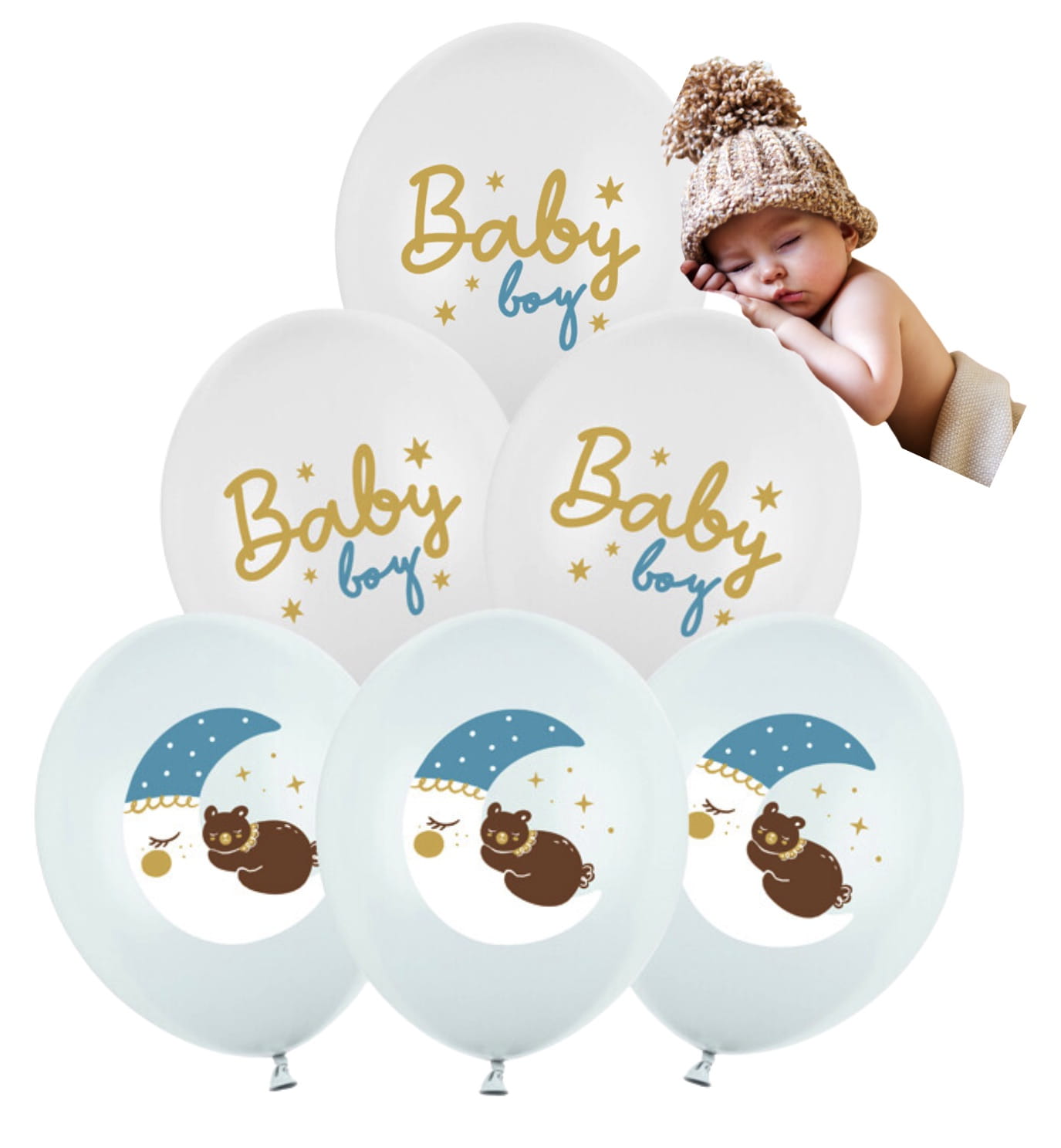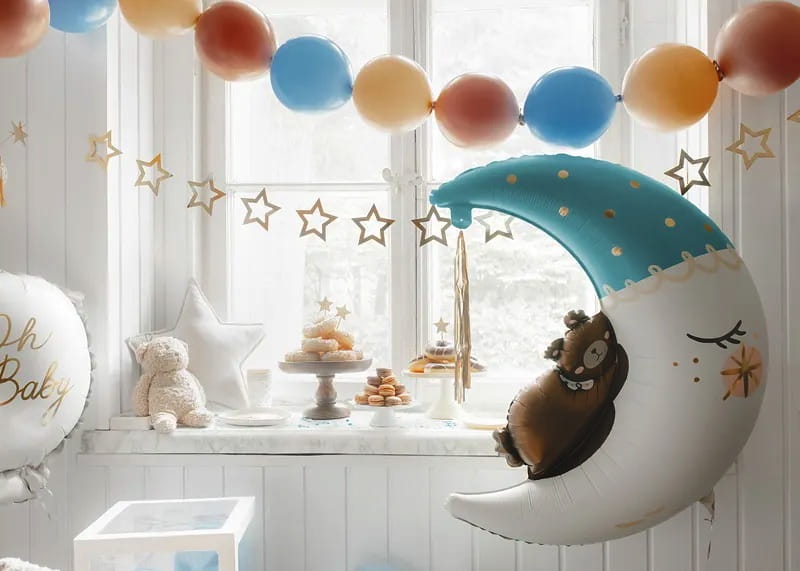 Balony Baby Boy Błękitne Powitanie w Domu Witaj Chłopiec Chłopczyk księżyc