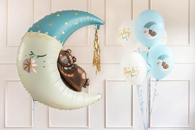 Balony Błękitne Powitanie w Domu Witaj Chłopiec Chłopczyk Baby Boy Księżyc
