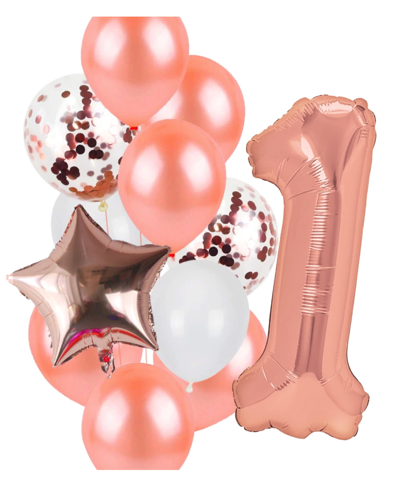 Balony Roczek DZIEWCZYNKI CYFRA ROSE GOLD 1 ZESTAW balonów z konfetti