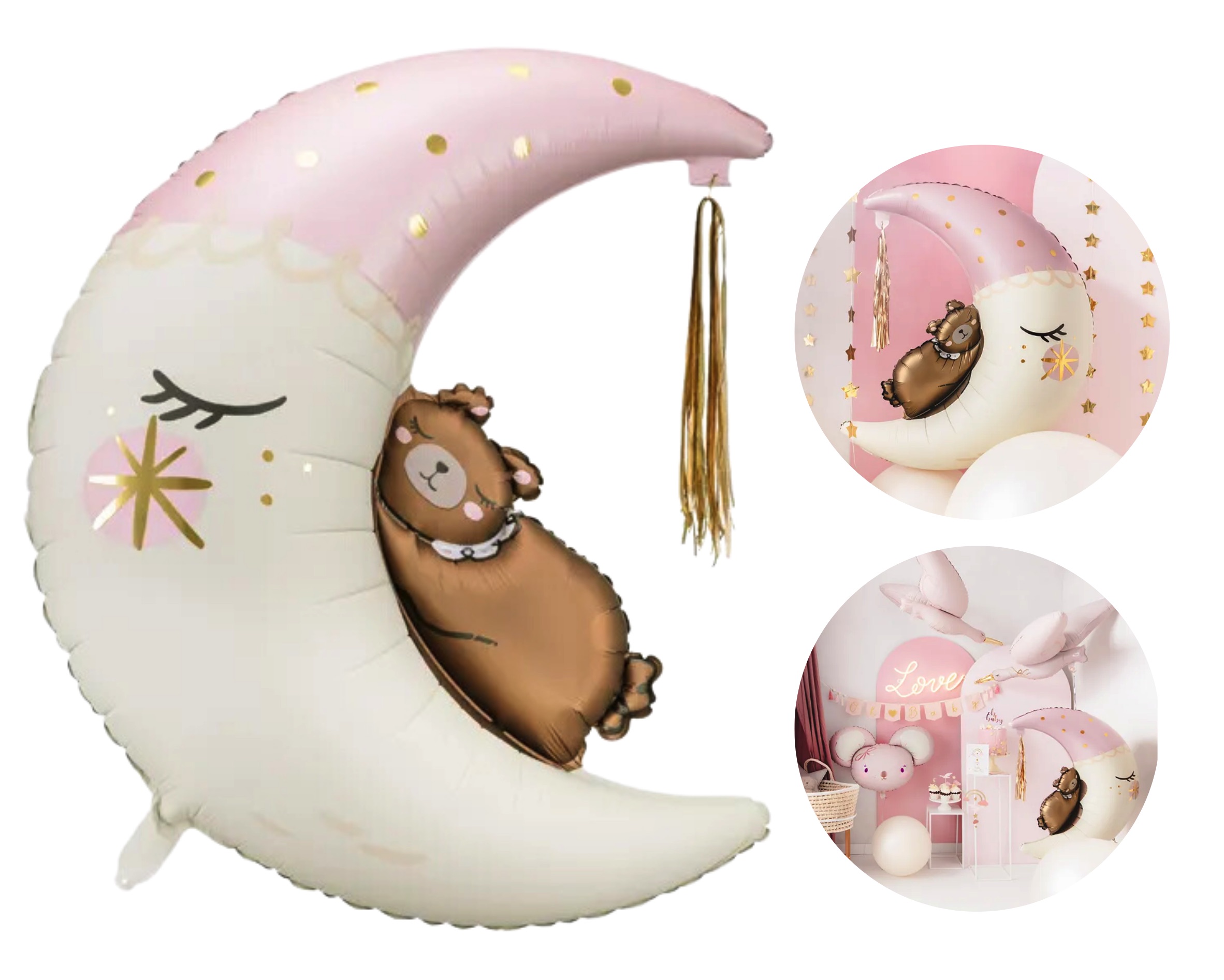 Balony Roczek Dziewczynki Baby Shower Prezent Chrzest różowe Zestaw Księżyc