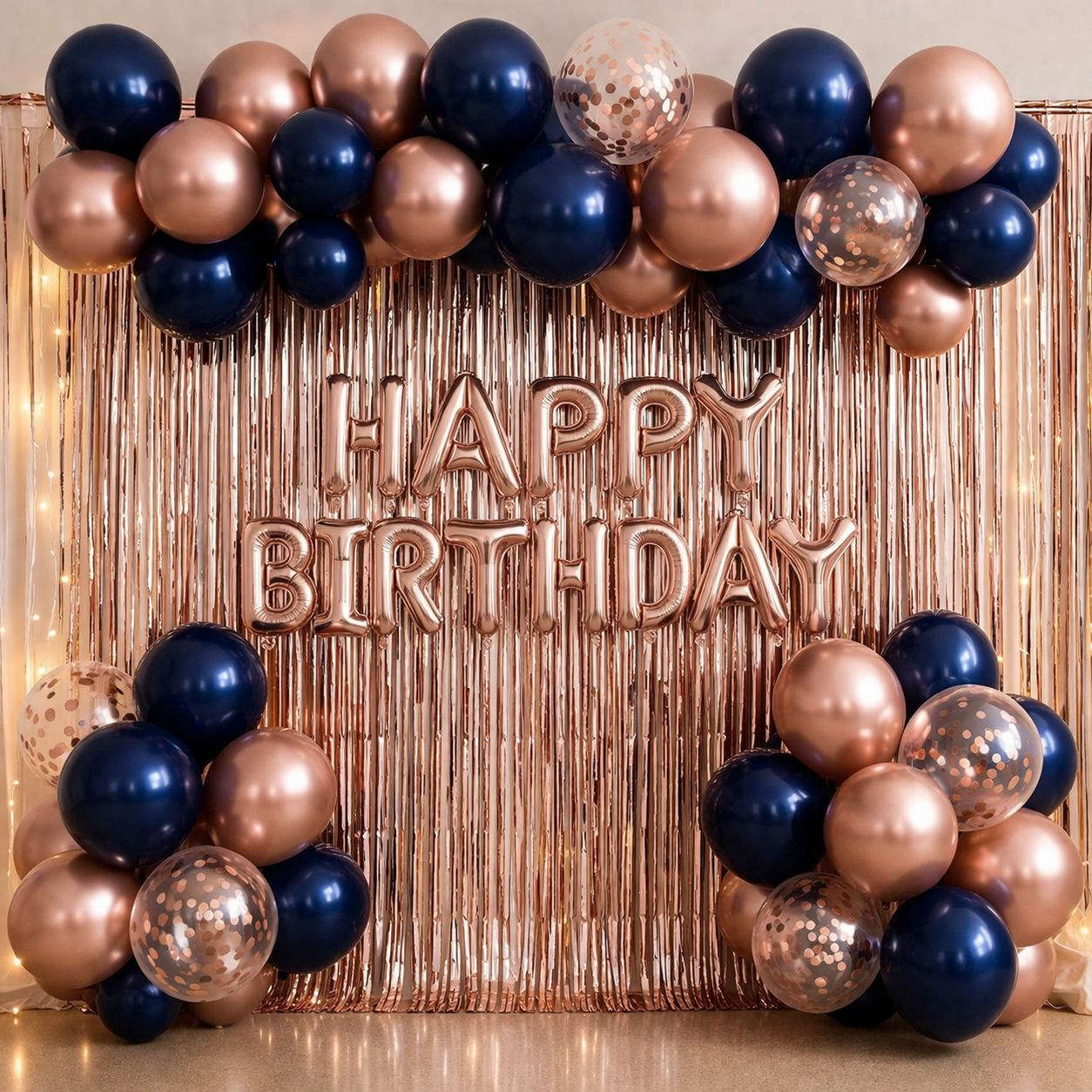 Balony Rose Gold Granatowe Zestaw dekoracji na urodziny Happy Birthday