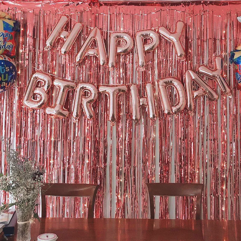 ✔️ napis z balonów foliowych kolor rose gold Happy Birthday (balony nie unoszą się po napompowaniu helem, rozmiar ok. 340cm x 35cm)