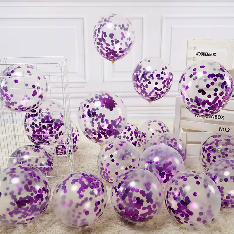✔️ balony lateksowe z konfetti fioletowym 6 sztuk 31 cm (12cali)