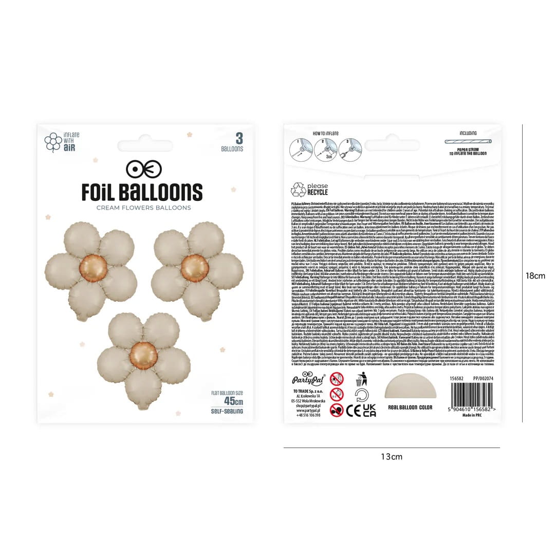 Balony foliowe Kwiat kremowy matowy 45cm 3szt. stokrotki