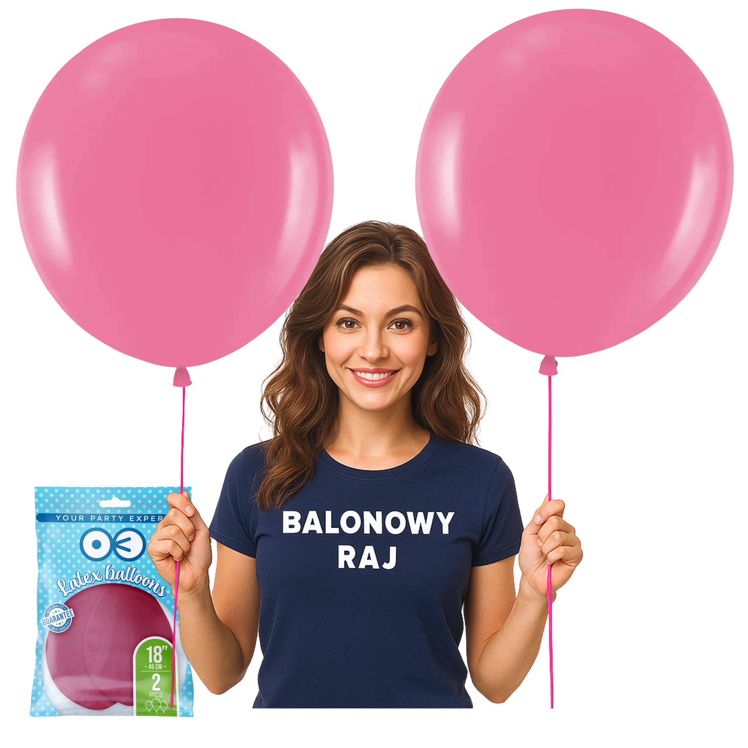 Balon FUKSJA 18 cali 2 sztuki LATEKSOWY duży okrągły Urodziny Dzień Kobiet