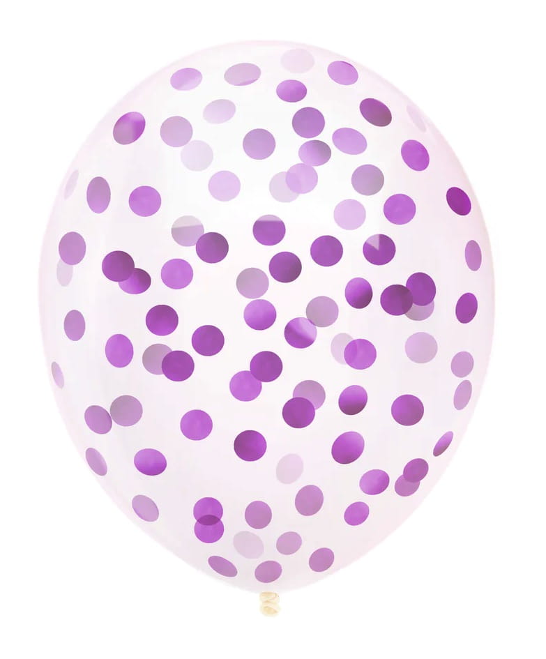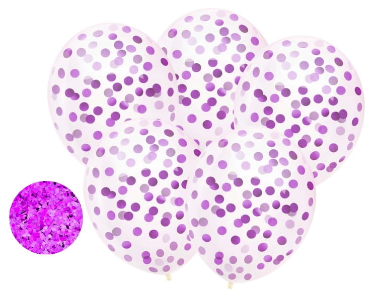 Balony z konfetti fioletowym 5 sztuk 30cm na Urodziny zestaw Roczek 18stka