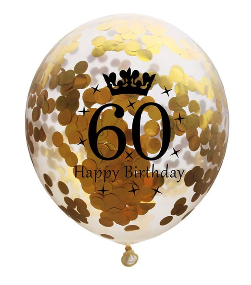 Balony lateksowe z konfetti na 60tkę 12 cali 5 szt