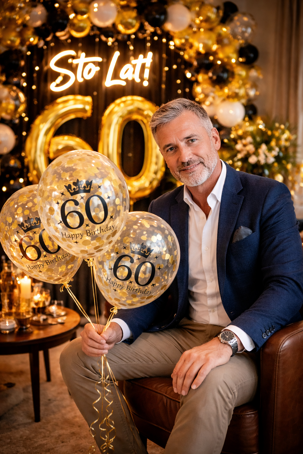 ✅ Gotowe balony z nadrukiem „60 Happy Birthday” – idealne na jubileusz