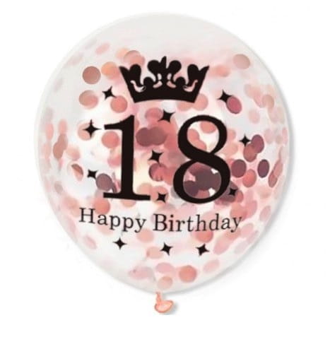 Balony lateksowe z konfetti rose gold na 18stkę 5 szt