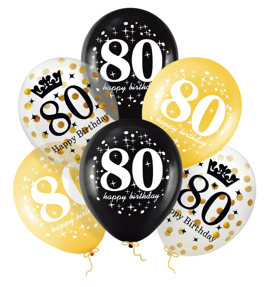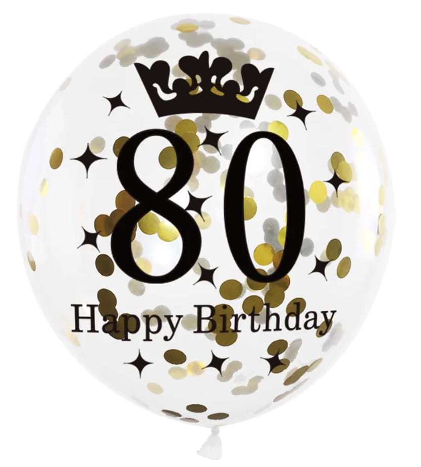 Balony lateksowe z nadrukiem 80 urodziny z konfetti 12 cali 6 sztuk