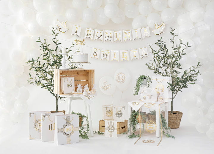 Balony lateksowe z nadrukiem Komunia Święta IHS 12 cali 10 szt