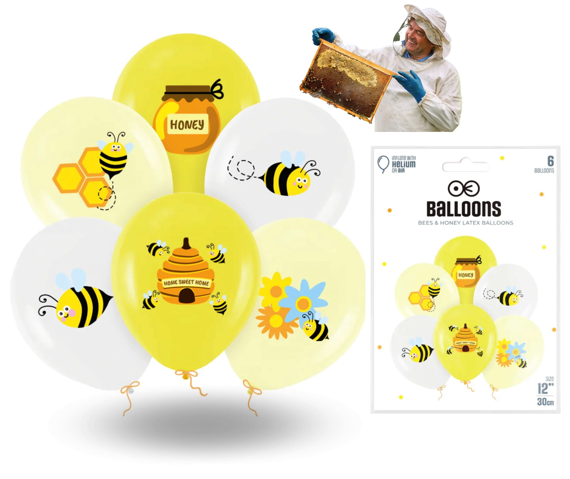 Balony lateksowe z nadrukiem Pszczoły Miód Ul 12cali 6szt. zestaw