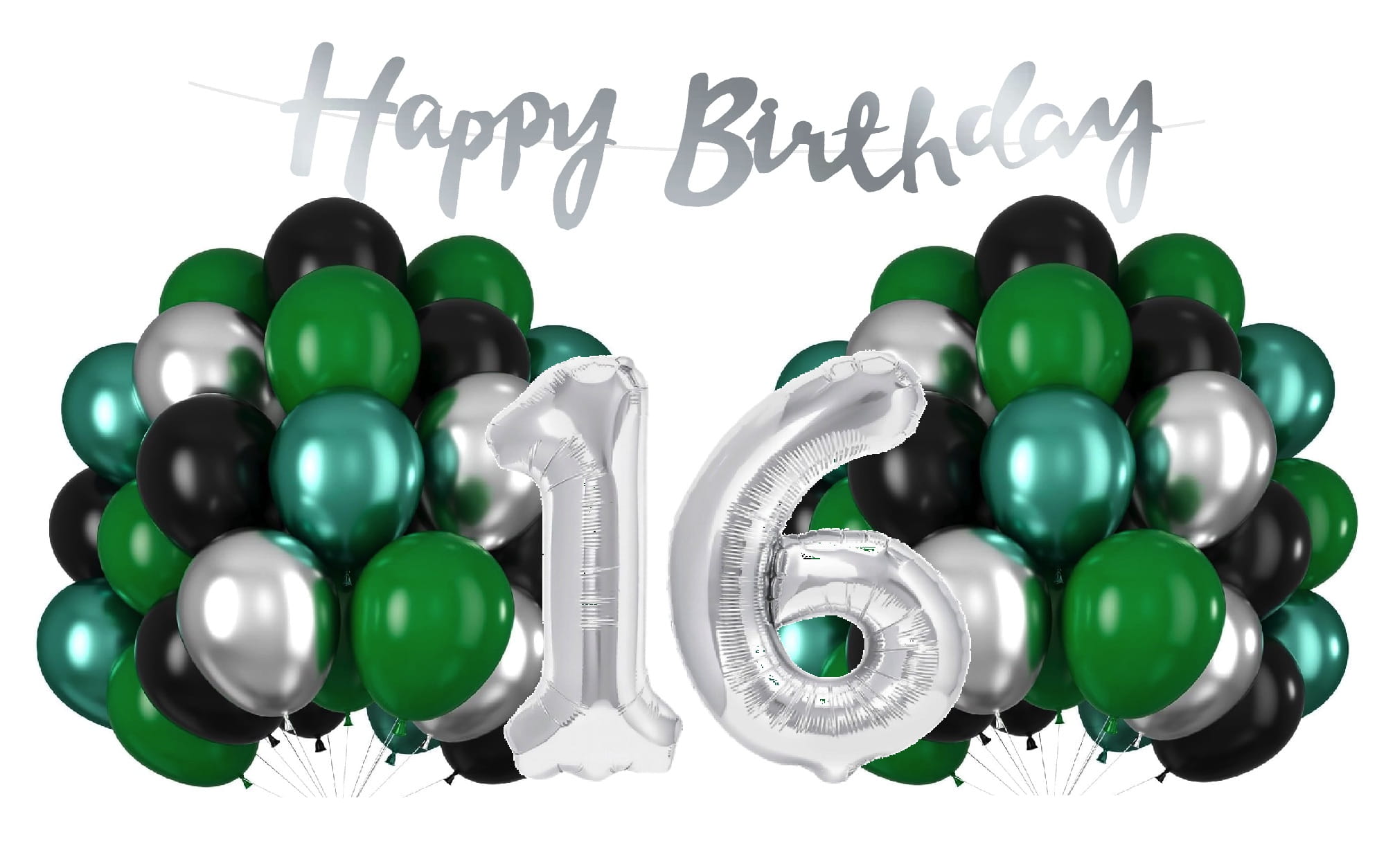 Balony na 16 Urodziny srebrno zielone Zestaw Cyfry Baner