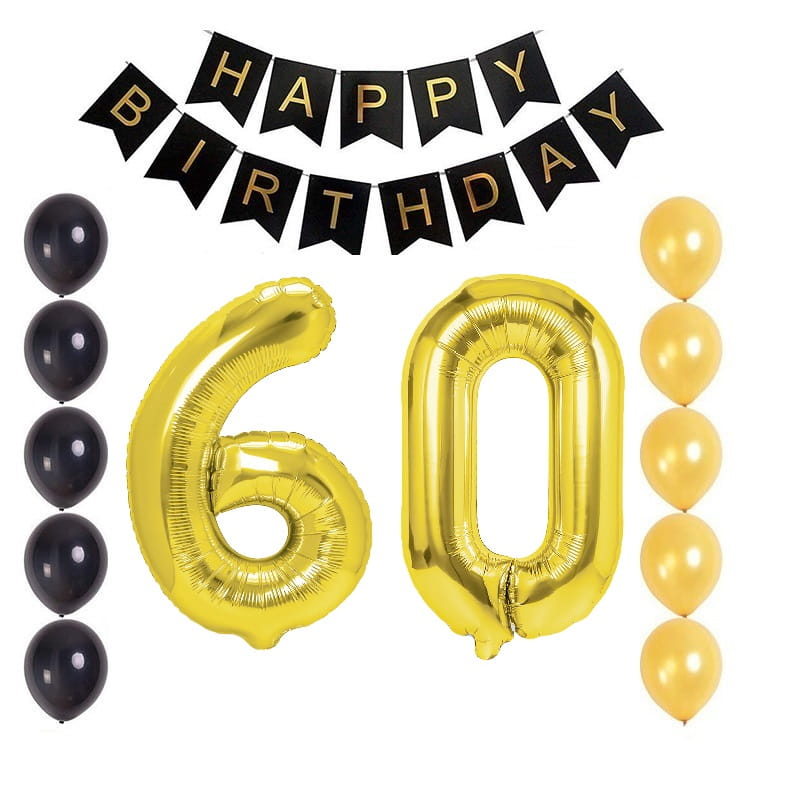 Balony na 60 urodziny czarno złoty zestaw balonów Baner