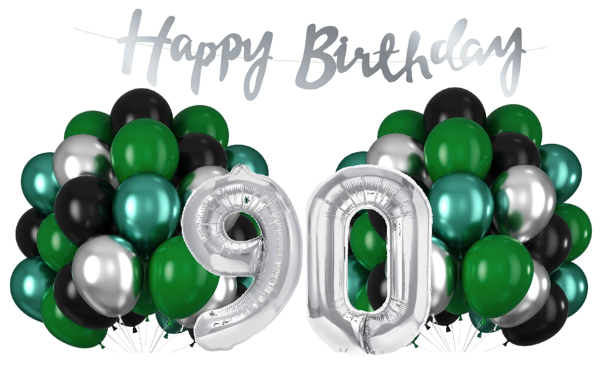 Balony na 90 Urodziny srebrno zielone Zestaw Cyfry Baner