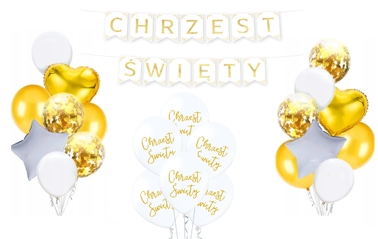 - balony lateksowe białe ze złotym nadrukiem Chrzest Święty 6 sztuk około 31 cm (12 cali )