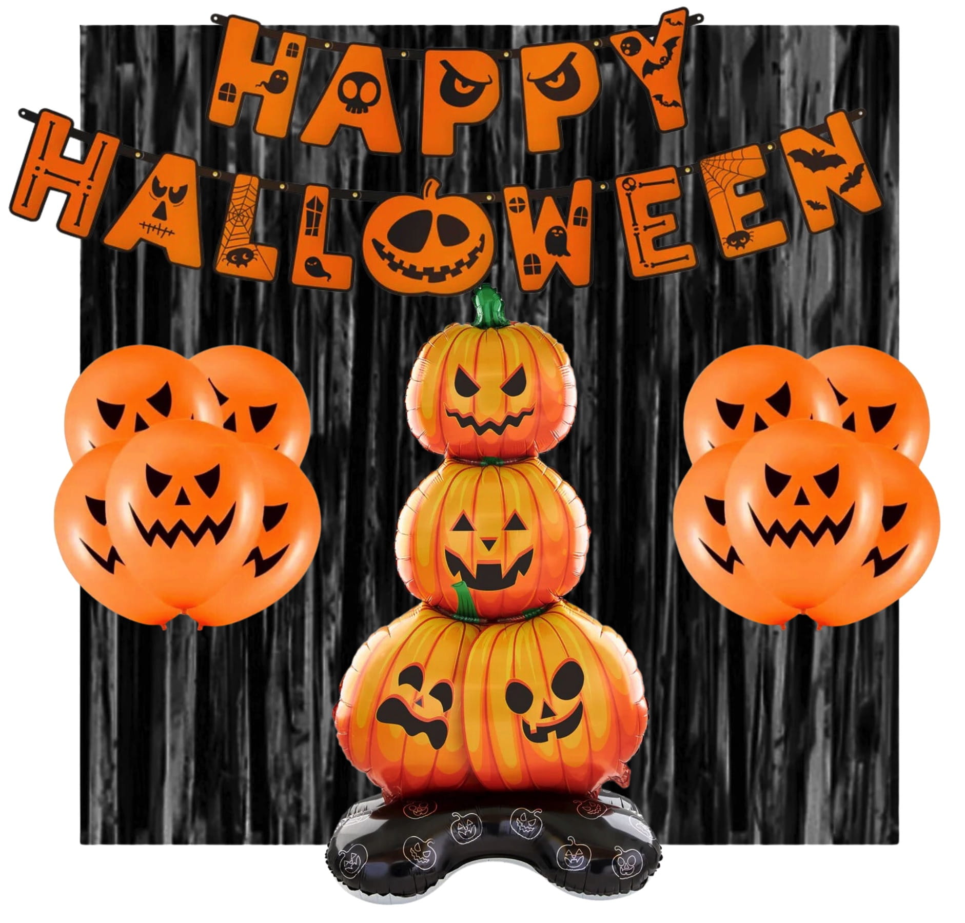 Zestaw na Halloween Balon Stojący Dynie Kurtyna Foliowa Baner