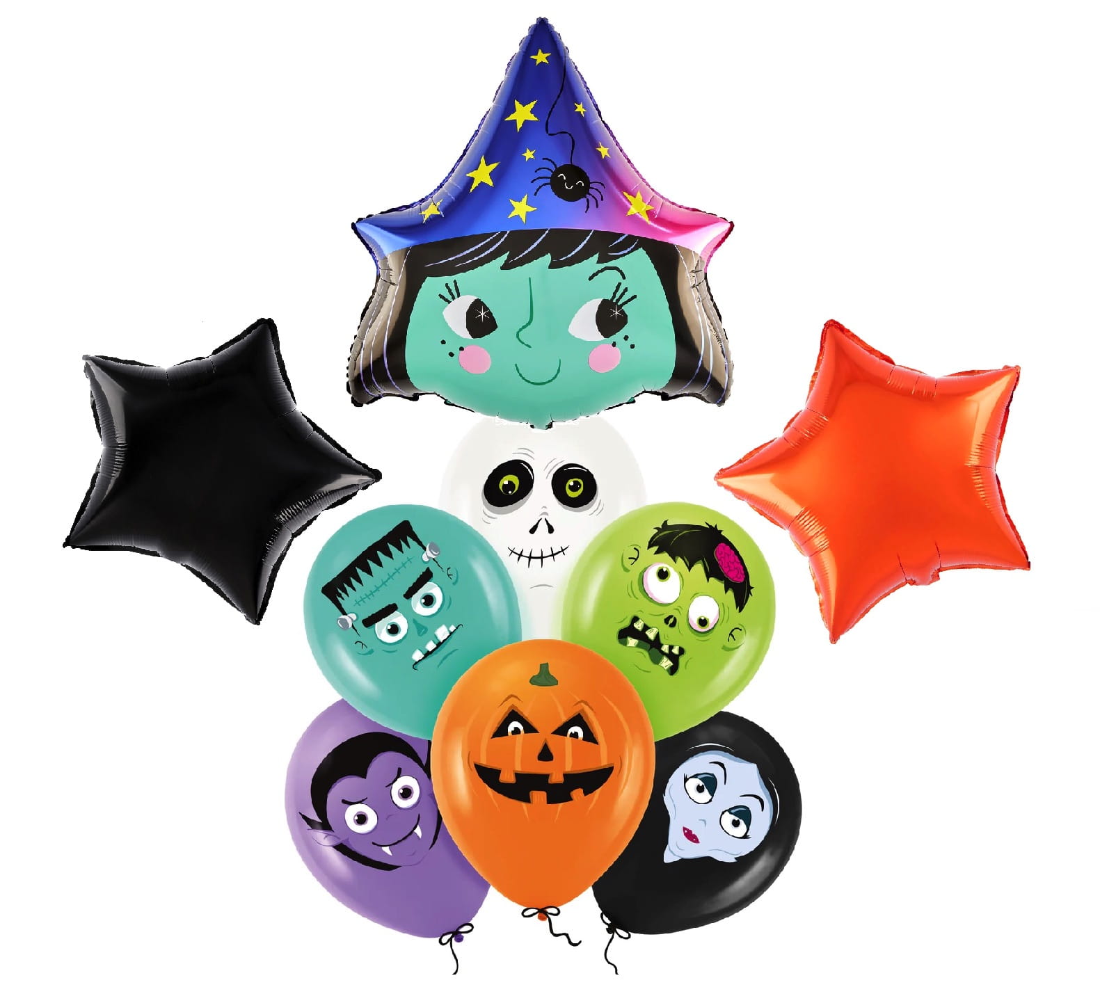 Balony na Halloween zestaw Czarownica Zombi Potworki kolorowe dekoracje balony