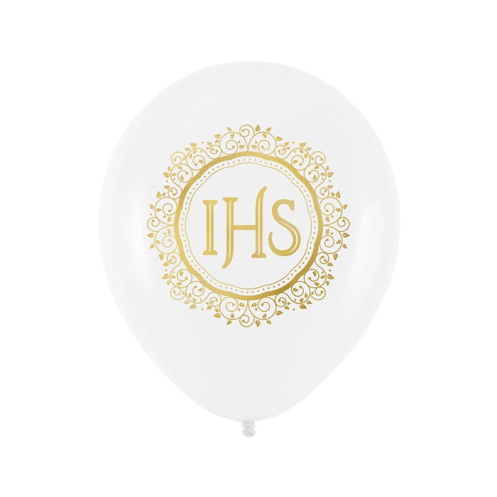 ✔ balony lateksowe białe z nadrukiem Komunia Święta i IHS 12 sztuk około 31 cm