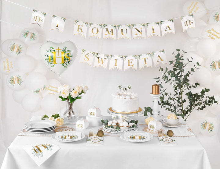 Zestaw balonów na I Komunię Świętą Zielone balony Komunijne