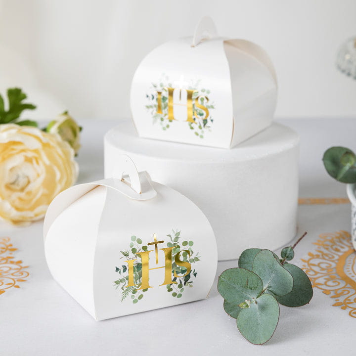 ✔ baner papierowy, jednostronny biały ze złotym napisem I Komunia Święta (16 flag, wymiary flag: 14,5 x 18cm)