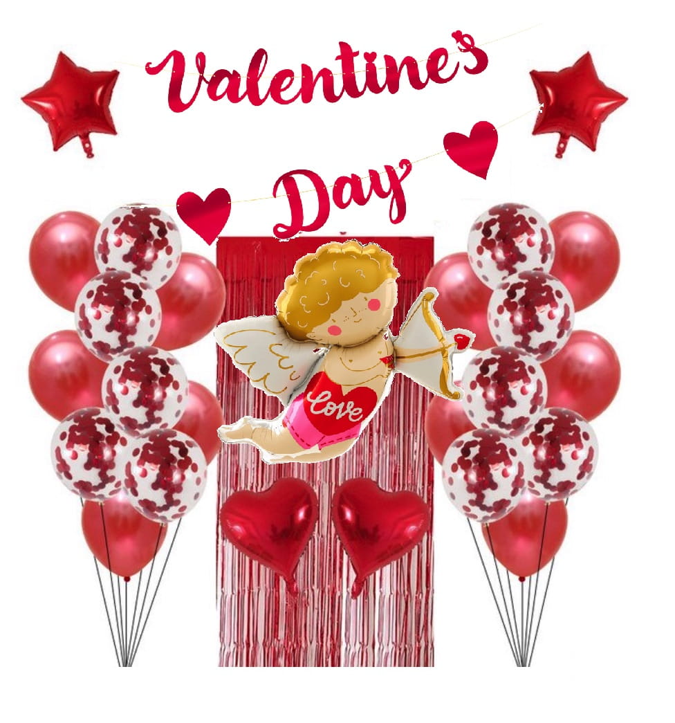 Balony na Walentynki Kurtyna Serca Amorek Love czerwone Zaręczyny Prezent