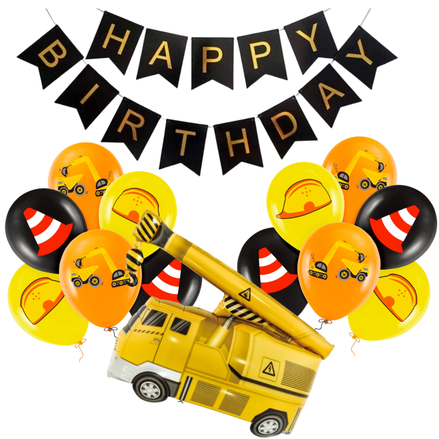 Balony na urodziny chłopca BUDOWA Dźwig roboty drogowe zestaw balonów Baner