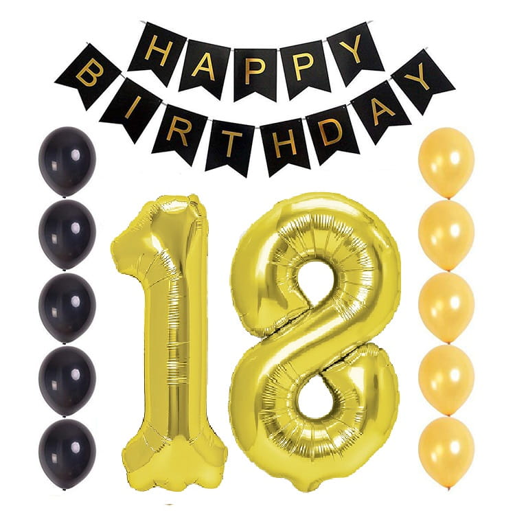 Balony na urodziny czarno złoty 0-99 z cyframi