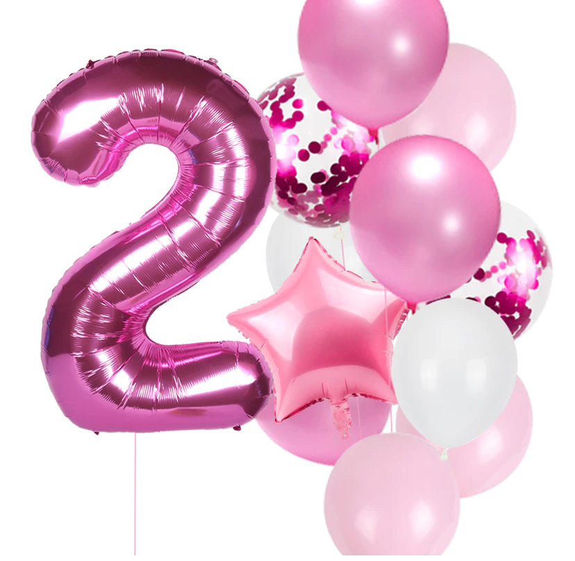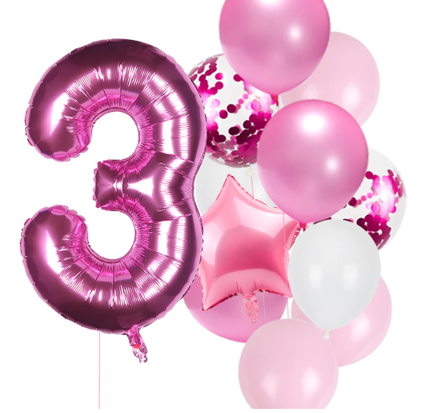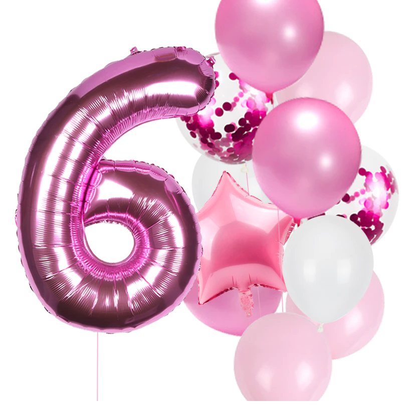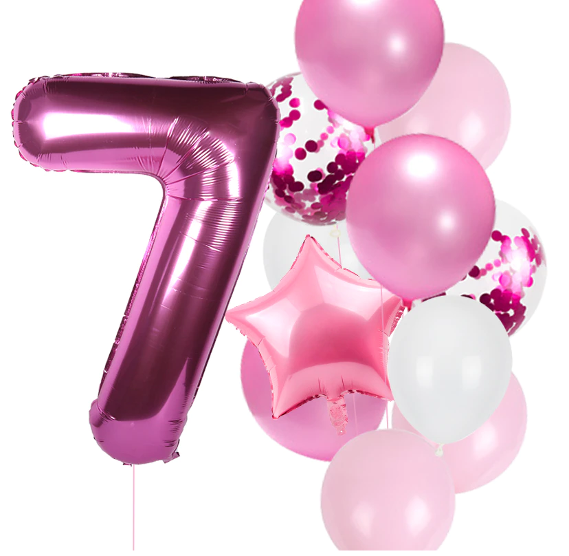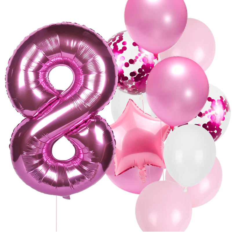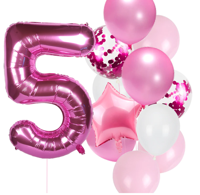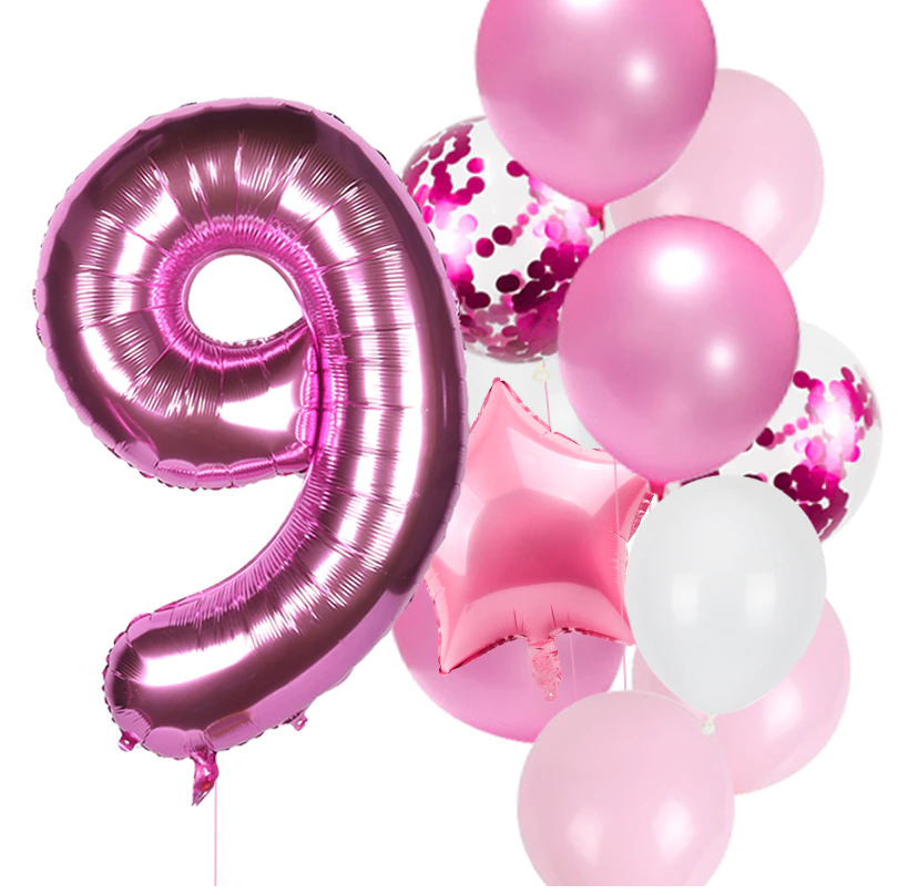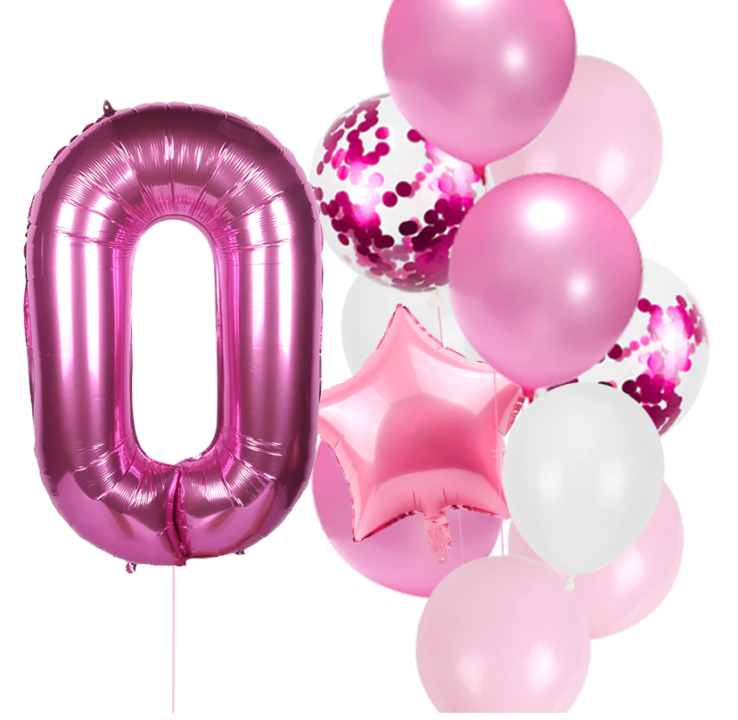 Balony na urodziny dziewczynki Zestaw balonów różowe z cyfrą fuksja 0-9 Hel