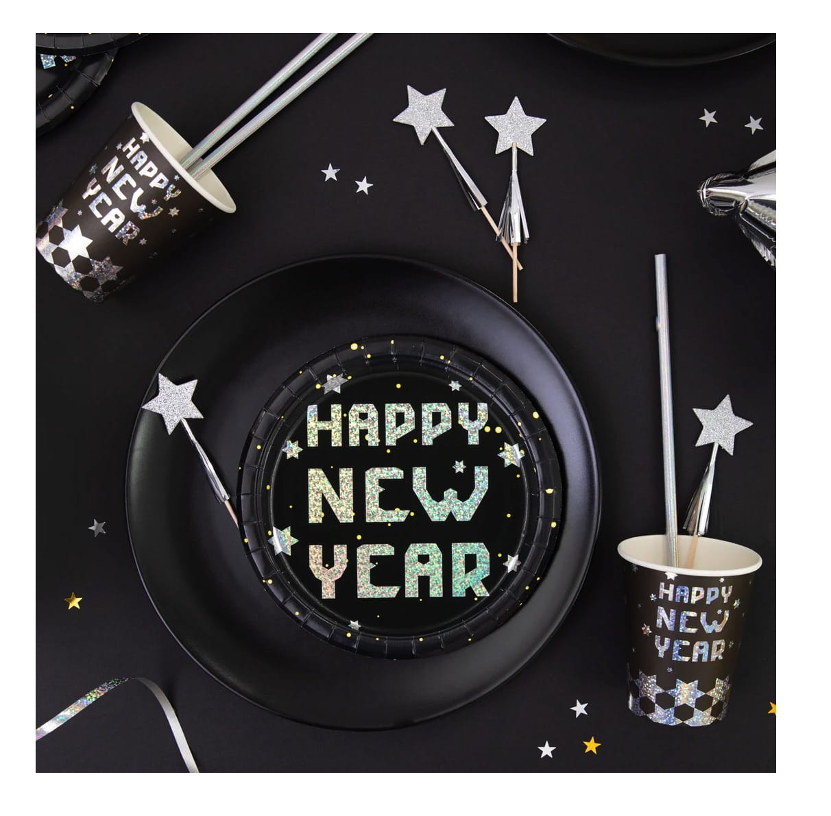 Zestaw balonów srebrnych na Sylwestra Baner Happy New Year Szampan